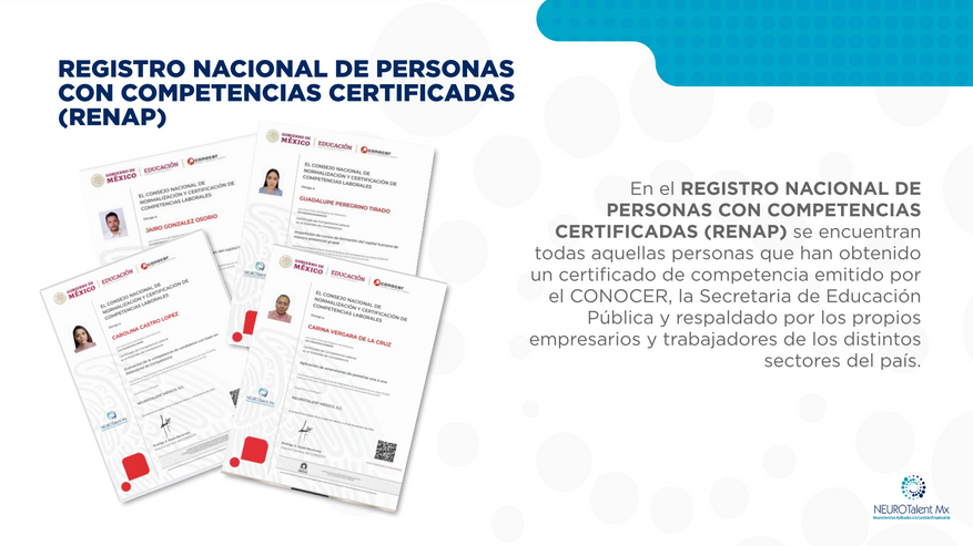 Lleva Procesos de Alineación, Evaluación y de Resultar Competente la Gestión del Certificado de Valor Curricular ante la Secretaria de Educación Publica y CONOCER.
